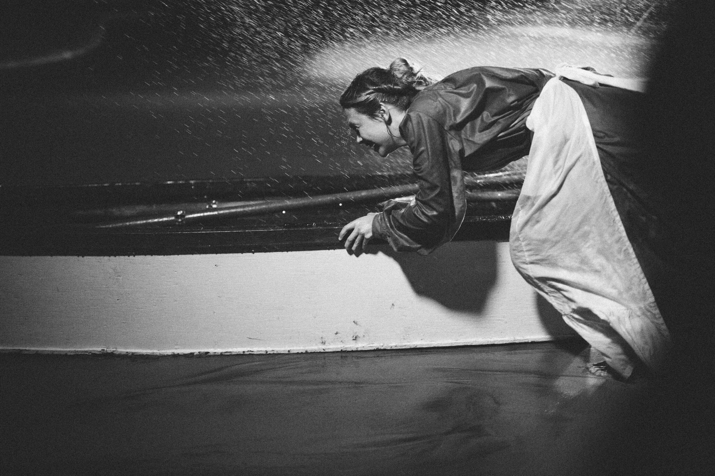 She clambered over the rocks, slick with rain, and into her rowboat. As she pushed off from shore the wind and freezing rain threatened to drive her back, but she rowed with all her might.